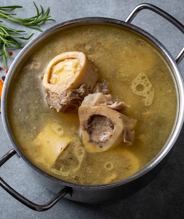 Die Bouillon können Sie selbst zubereiten oder Sie verwenden eine fertige Rinds-, Geflügel-, Kalbs- oder Gemüsebouillon, um die Zubereitungszeit deutlich zu verkürzen. Zum Verfeinern eignet sich fein geschnittenes Gemüse wie Lauch, Sellerie und Rüebli. Für eine besondere Würze kann die Bouillon mit Cognac, Sherry, Ingwer oder Sojasauce abgeschmeckt werden.